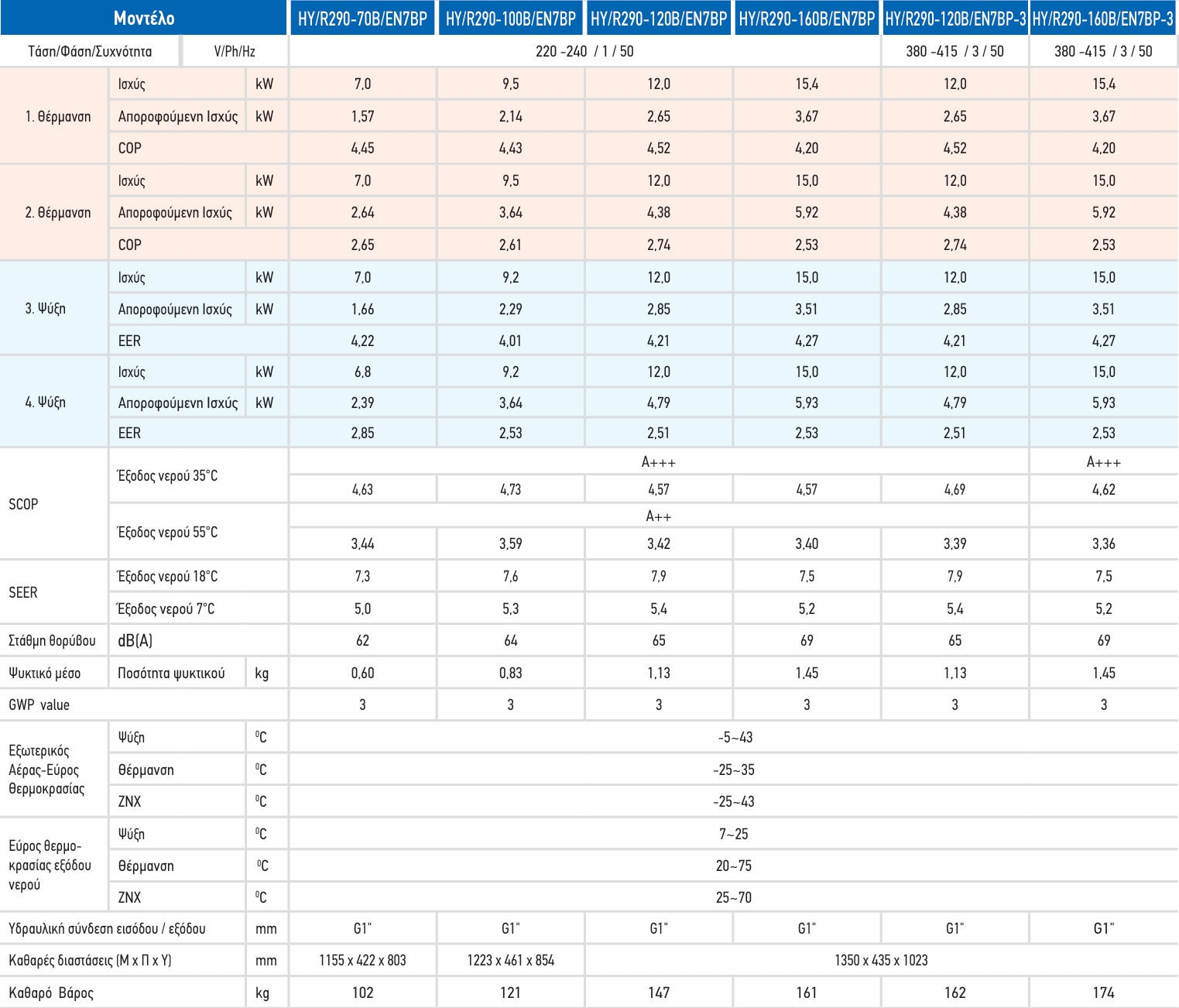2. Περιβάλλον 7°C.85% RH. Νερό εισόδου/εξόδου 55/47°C