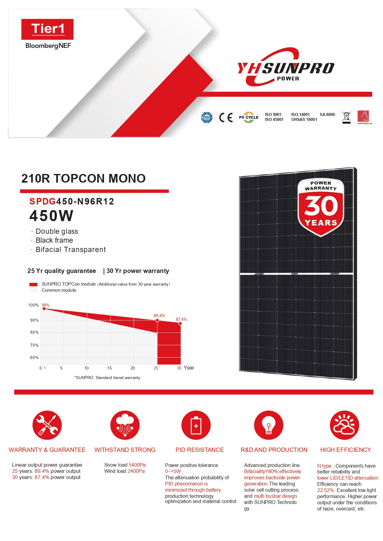 Με πρωτοποριακή τεχνολογία κοπής κυψελών και σχεδίαση πολλαπλών διαύλων (multi busbar) της SUNPRO Technology, τα πάνελ εξασφαλίζουν υψηλή σταθερότητα και απόδοση.